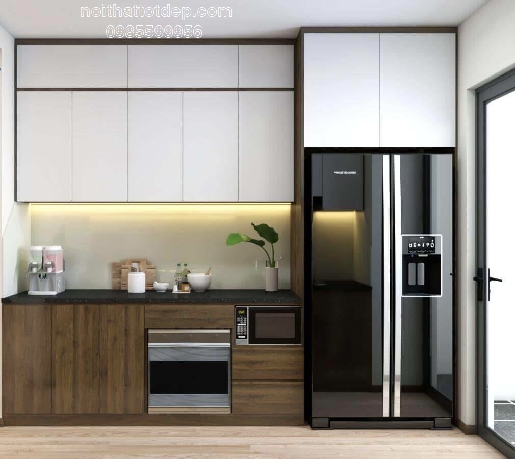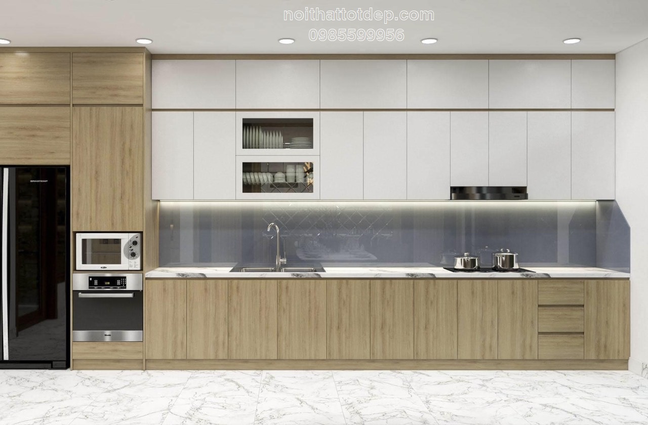 Theo kinh nghiệm kiến trúc sư bên Nội Thất Tốt Đẹp , việc làm tủ bếp cao hết trần hay không còn phụ thuộc vào không gian còn lại giữa trần và tủ bếp bao nhiêu. Thường thì tủ bếp trên cao 2,2 m. Để tính khoảng hở ở giữa, lấy chiều cao hoàn thiện đến trần trừ đi 2,2.